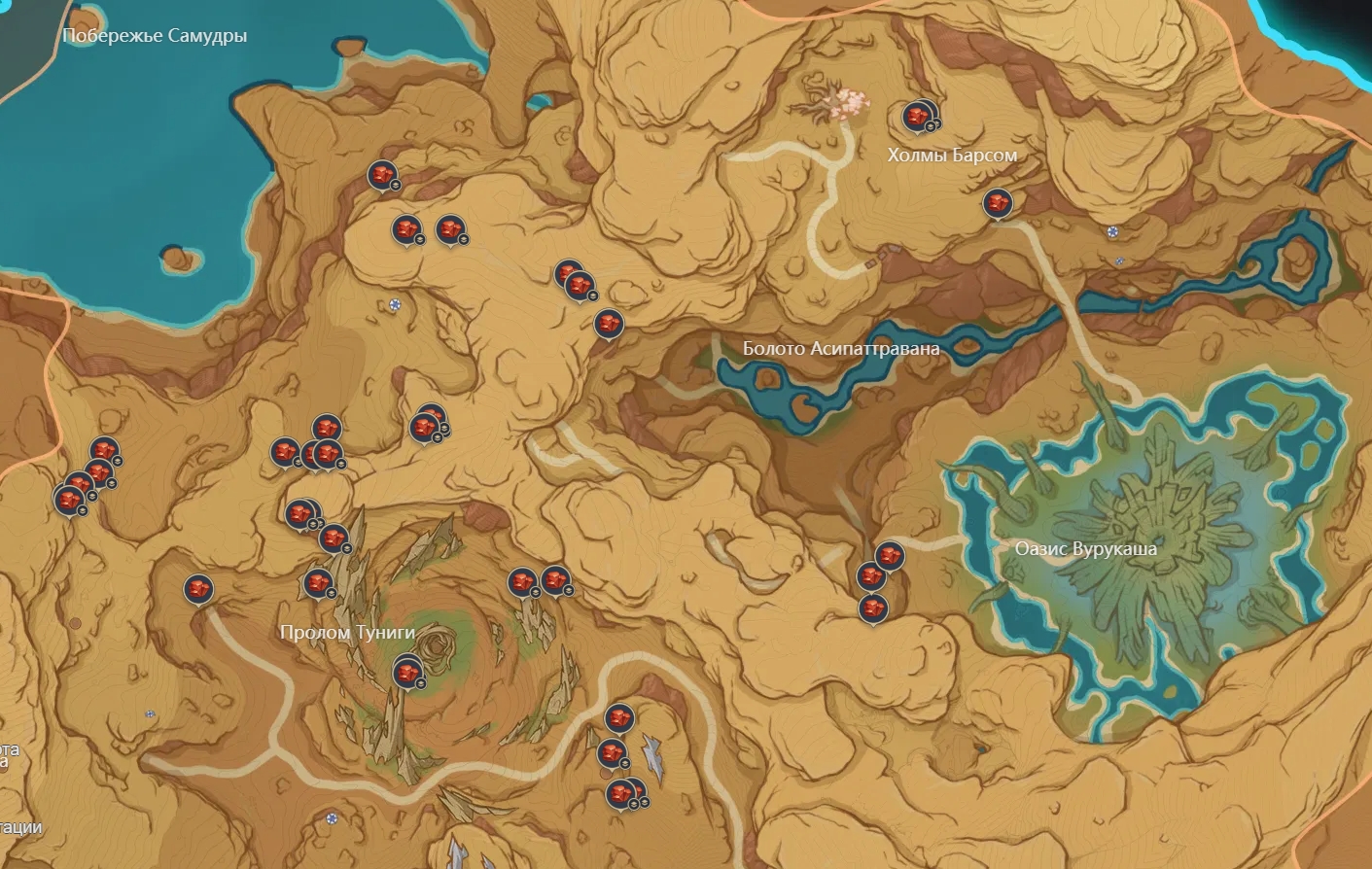 Чтобы вам было намного проще найти все места спавна этой руды, мы рекомендуем воспользоваться официальной интерактивной картой Тейвата.
