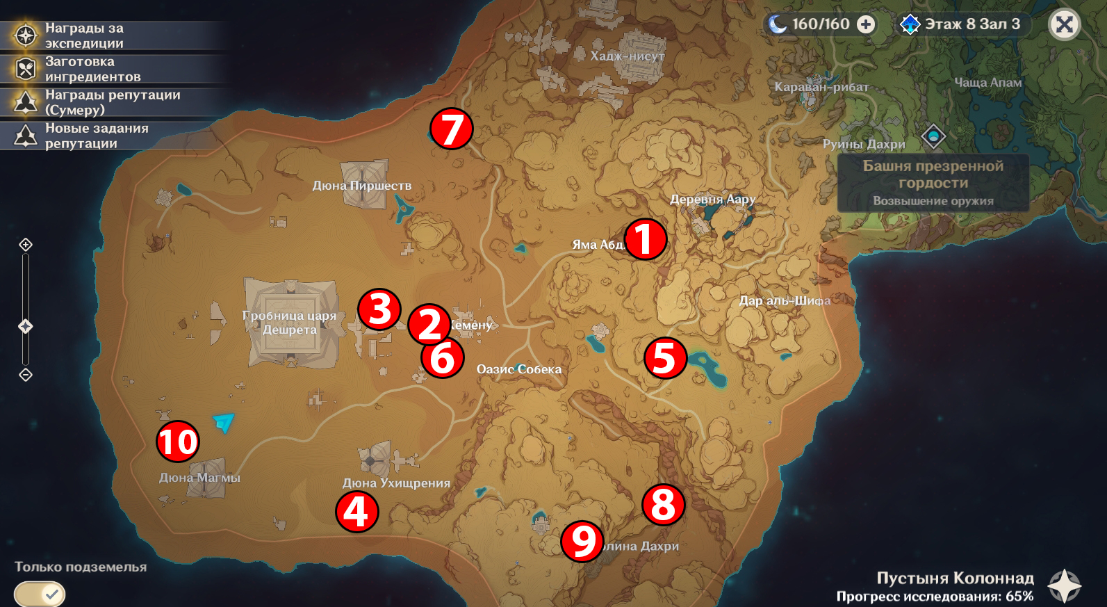 7 | Находится под землей. Попасть туда вы сможете только после того, как завершите задание «Изобилие под песчаными дюнами I» (серия «Панихида Билцис») | ![]() |