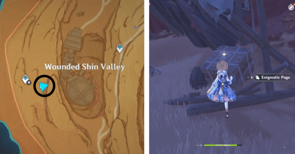 8 | Переместитесь к статуе Семи Архонтов возле Долины Дахри и идите в ущелье, где находится лагерь ученого, у которого вы брали квест «Дилемма Афрату». На ящике возле палатки лежит страница | ![]() |