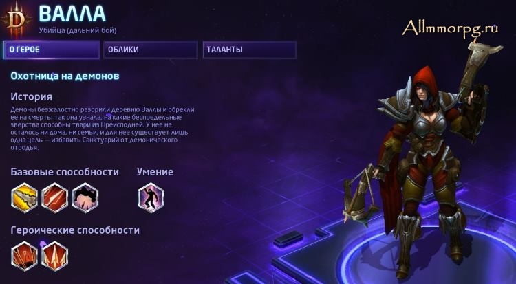 Валла - это разносторонний и гибкий герой-убийца дальнего боя из вселенной Diablo. Она обладает высоким дпс в одну цель и может наносить сильный АоЕ-урон за короткий промежуток времени. Тем не менее, хрупкость Валлы делает ее приоритетной целью для противника.