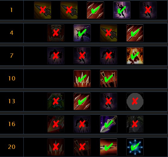 - Злоба (Уровень 1) -> Ярость Нексуса (Уровень 20)