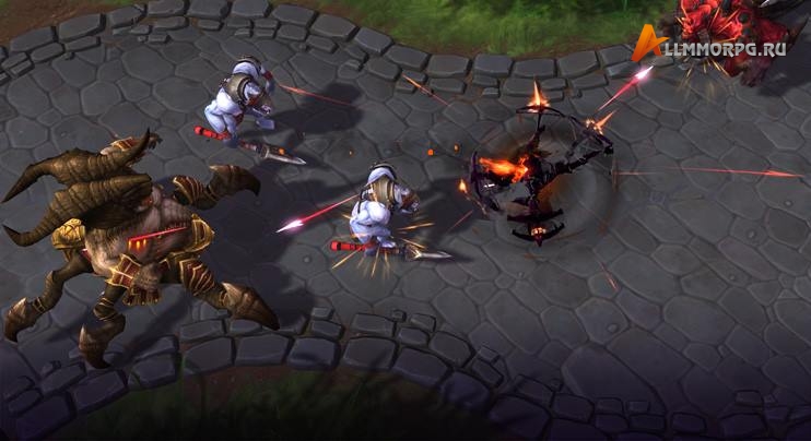 Сложность в использовании Самонаводящейся стрелы заключается в том, что иногда она выбирает незначительные цели - например, воинов, прислужников и строения, если те находятся между героем и интересующей его целью. Для того, чтобы Самонаводящаяся стрела гарантированно поразила нужную цель, необходимо встать так, чтобы между героем и целью не было лишних объектов. Таким образом, вы можете подойти к противнику сбоку или быстро зачистить ближайших вражеских воинов с помощью Залпа. Самонаводящаяся стрела имеет довольно большой кулдаун и наносит сильный урон одной цели (примерно как три базовые атаки), поэтому ее необходимо использовать с максимальной эффективностью.