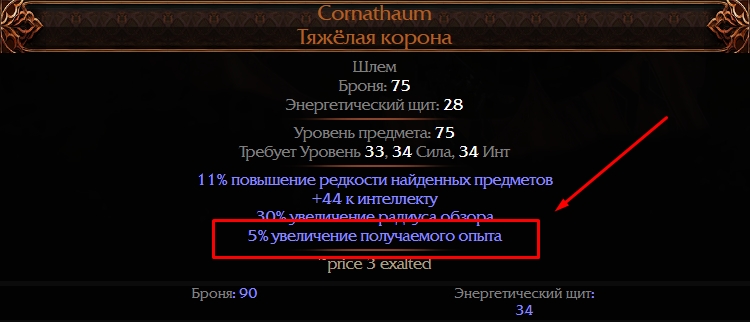 Чтобы получать больше опыта за убийство монстров, наденьте на героя предметы с характеристикой «% увеличение получаемого опыта». Например: