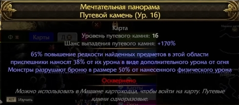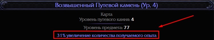 Путевые камни могут иметь различные модификаторы, такие как «на % больше волшебных монстров», «% увеличение количества редких монстров», «% повышение редкости найденных предметов в этой области» и проч. Но если вы нацелены на быструю прокачку, вам нужно стараться получить путевой камень со следующими модификаторами: