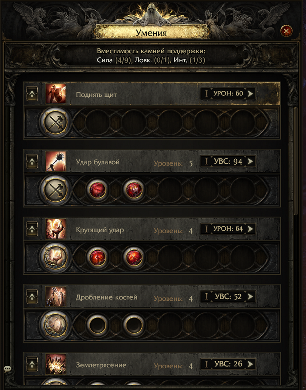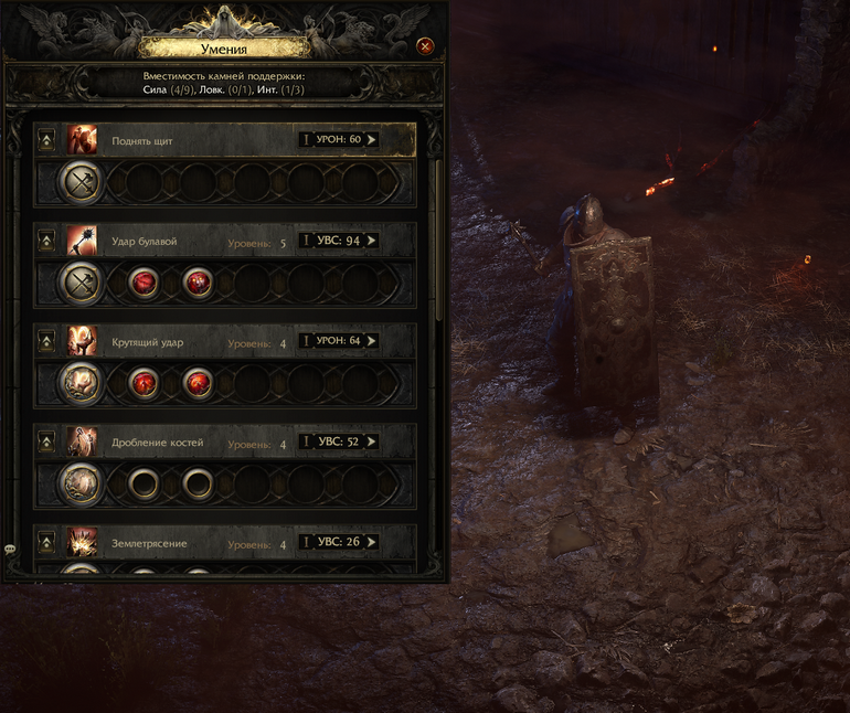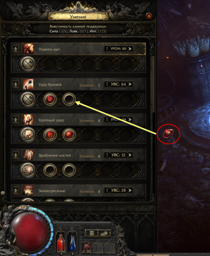 - Как только вы возьмете в руки камень, то увидите, что некоторые слоты начали подсвечиваться. Это позволяет определить, для какого именно навыка можно использовать камень поддержки.
