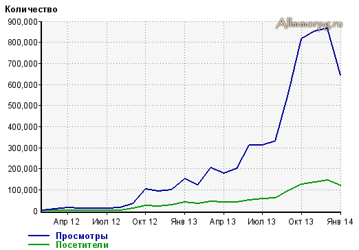 allmmorpg.ru - сайт игровой тематики. В основном посвящен играм компании blizzard. Кроме того Мы работаем над созданием сети сайтов, посвященных самым популярным играм. Сайт успешно развивается, что отражает рост посещаемости за последний год: