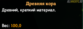 Древняя кора – материал, который используется преимущественно для изготовления оружия. Также она входит в список ресурсов, необходимых для постройки драккара.