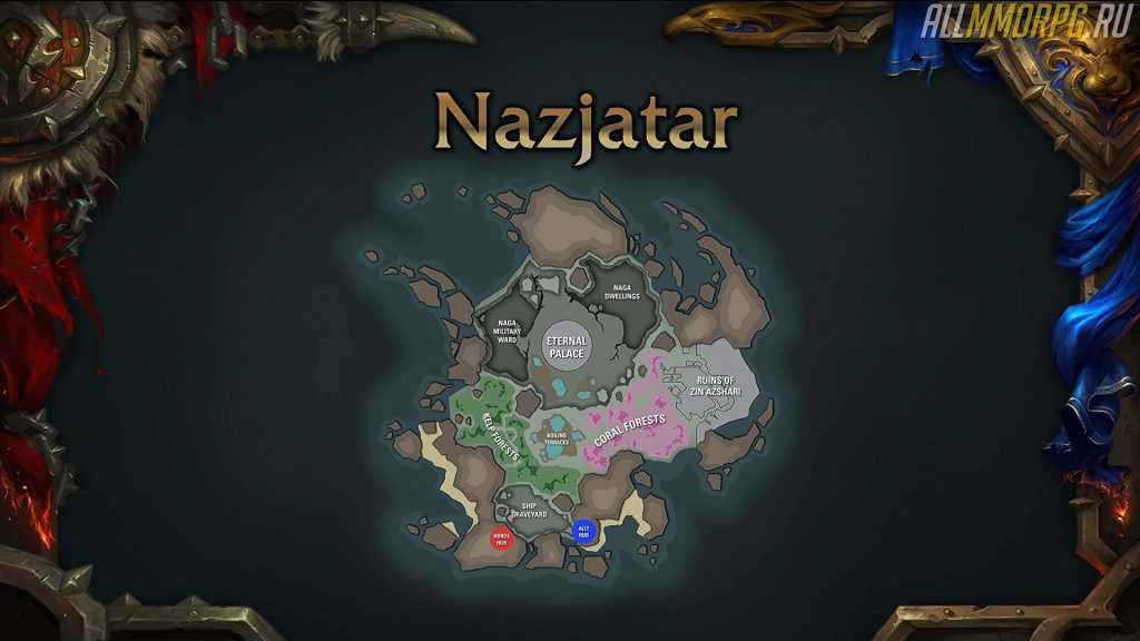 В Назжатаре вас ждет множество сюжетных цепочек, одна из которых ведет прямиком к королеве Азшаре. Подружитесь с морскими великанами и макрурами, чтобы подобраться к королеве поближе! В награду вы получите новый транспорт - морского конька и гигантского краба, а также сможете полюбоваться на детенышей наг!