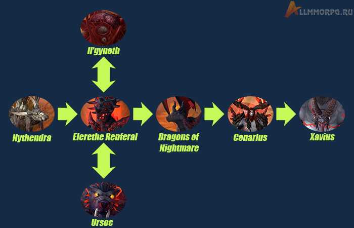 После Низендры вы сможете сразиться с Ил'гинотом, Элерет Дикой Ланью, Урсоком или Драконами Кошмара.
