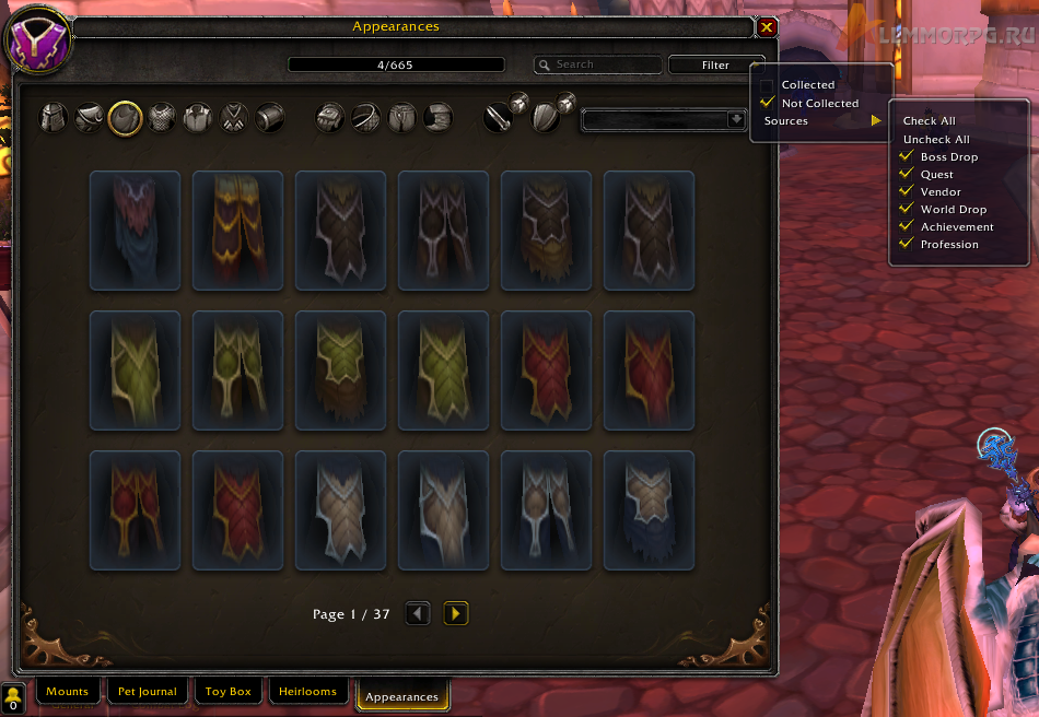 О трансмогрификации в Легионе в скором будущем будет написана отдельная статья, а пока скажу, что новый Гардероб позволит игрокам «хранить» все облики предметов в особом журнале-коллекции (SHIFT+P). Как видно на скриншоте, коллекцию можно отсортировать по разным фильтрам, а функциональность поиска, скорее всего, будет улучшена с помощью специальных аддонов. Будет разумно предсказать, что благодаря этим нововведениям рынок трансмогрификации просто взорвется.