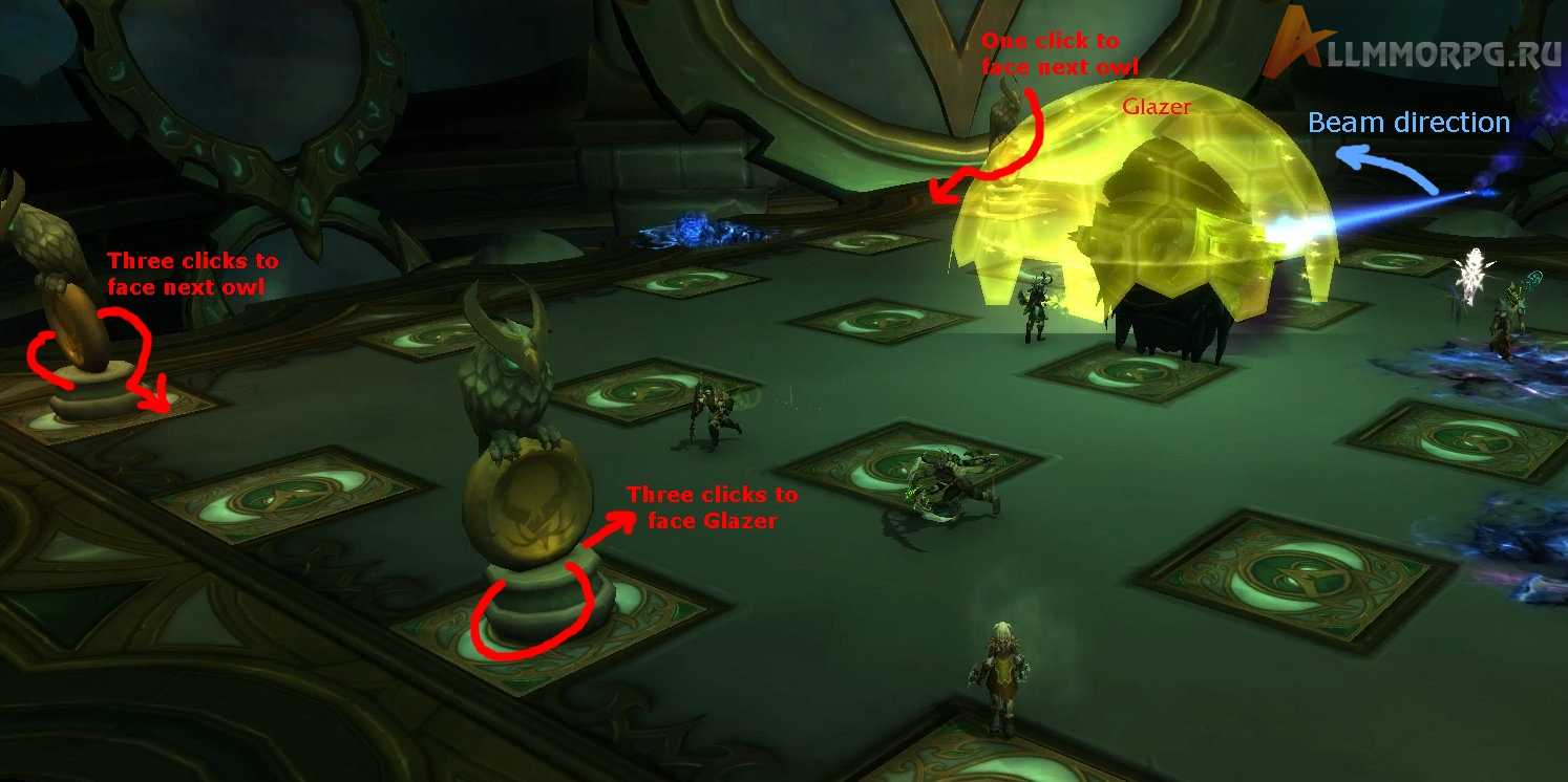 - Заберите Свет Элуны у Аватары тьмы и бросьте его в точку, из которой исходят Глефы Скверны, чтобы прервать Шаг сквозь тень.