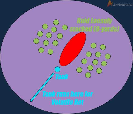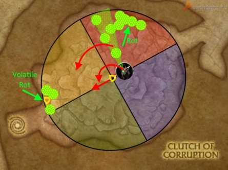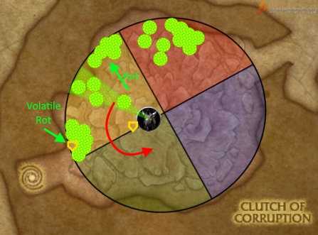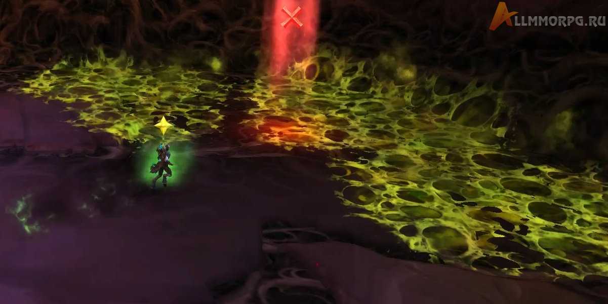 Став целью для Взрывоопасной гнили, вы должны отбежать к противоположной стене, как можно дальше от рейда, чтобы оставить там участки Зараженной земли и сократить получаемый союзниками урон.
