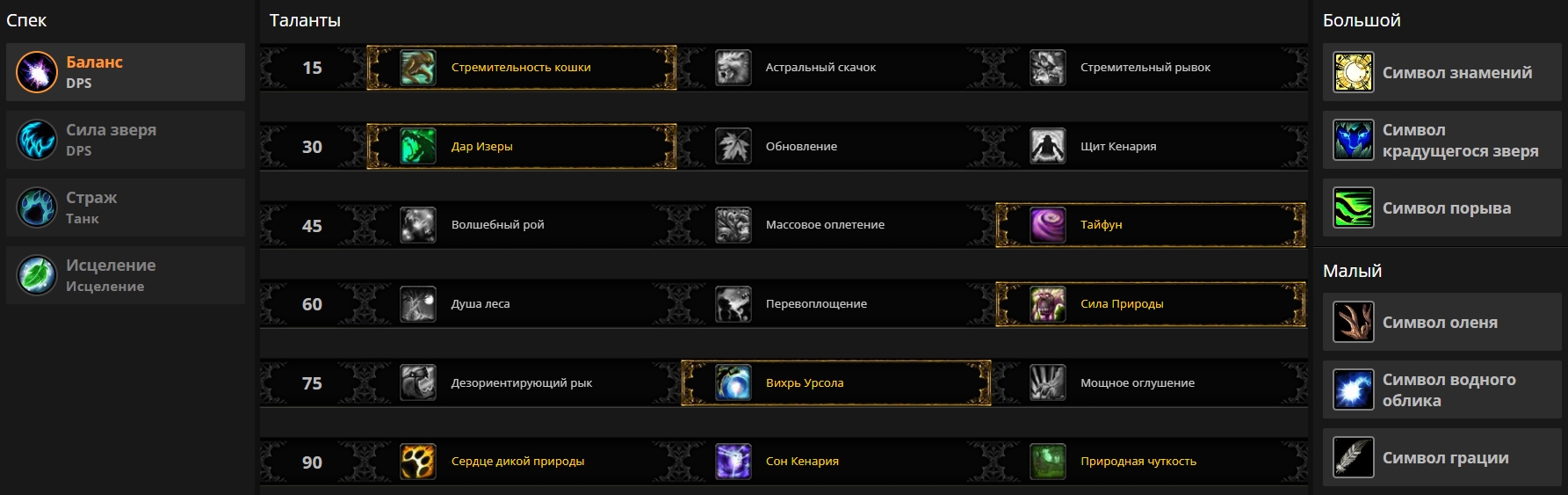 Малые символы для "Баланса" упрощают применение некоторых заклинаний. Мы рекомендуем вам использовать следующие варианты: