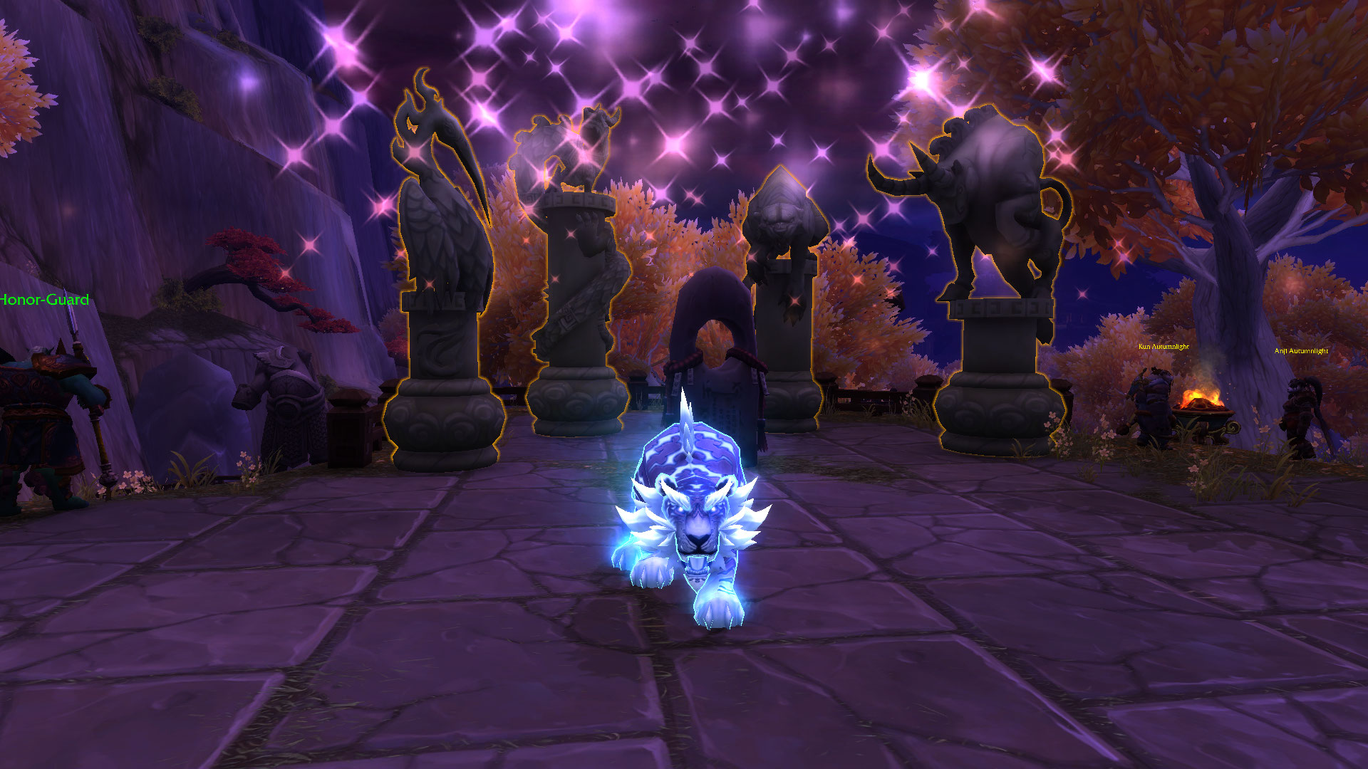 - Статуя Юй-лун дает Пробуждение Юй-лун. Этот эффект наносит урон от огня противникам и исцеляет союзников в радиусе 20м раз в сек. в течение 6 сек. Активный эффект, кулдаун 5 мин.