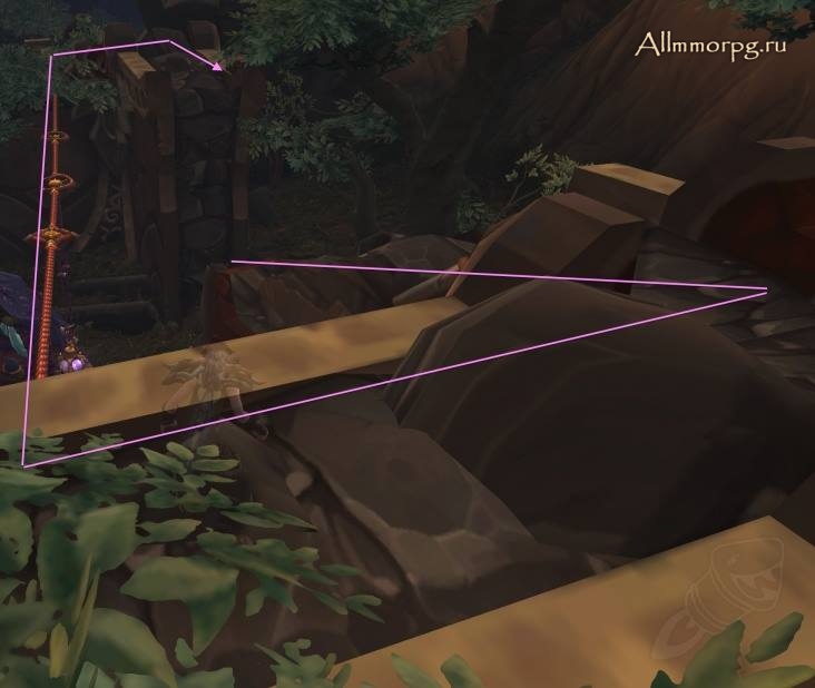 - Сокровища изгоев: Запрыгните на стену с холма, а затем пройдите по веревке.