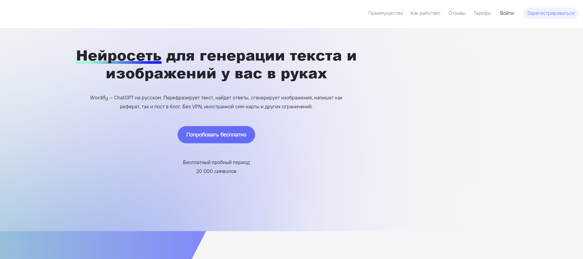 - бесплатный доступ ограничен 10 000 символами, получить их можно только через Telegram;
