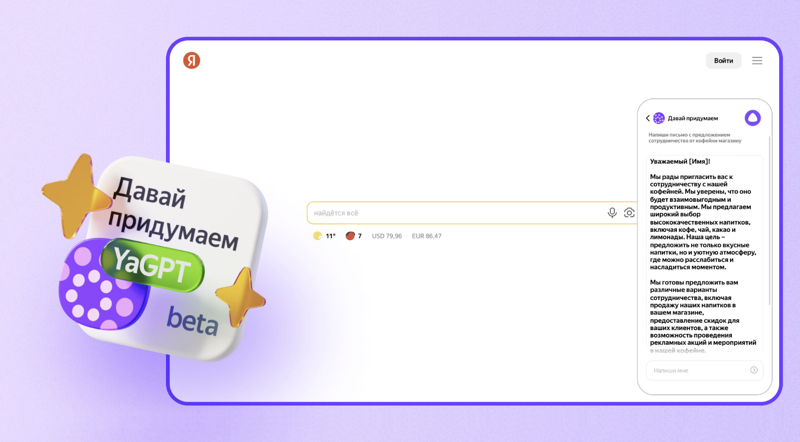 Универсальная и комплексная нейросеть, которая была создана специалистами “Сбера”. На данный момент известно, что ИИ способен генерировать текст, выдавать рекомендации, помогать с поиском информации и даже работать с иллюстрациями. Нейросеть создает уникальный и доработанный контент, который редко требует ручных правок, что не может не радовать.