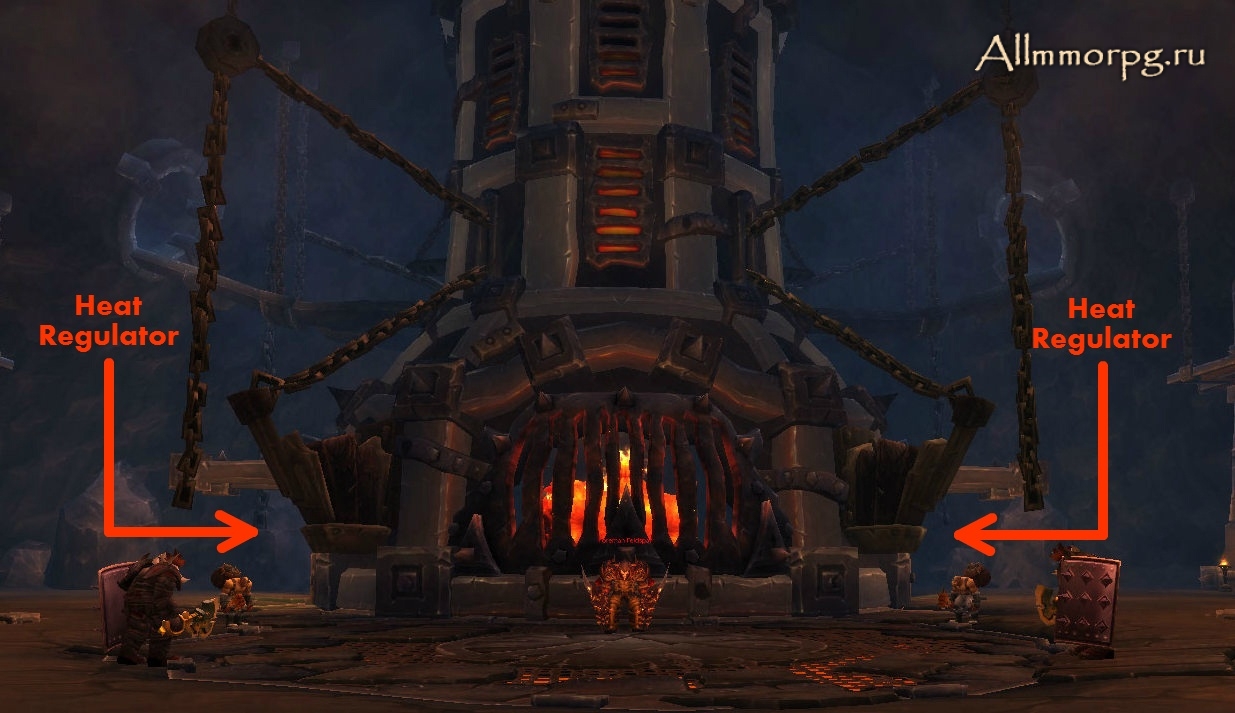 - Управляющийся с мехами работник кузни - повышает уровень жара Сердца горы. После разрушения регулятора работников нужно танковать. Иногда используют Оглушающий рев.