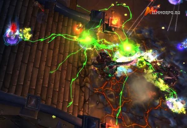 - Кроме того, босс использует Пылающее прикосновение Скверны, развешива над головами у игроков маленькие зеленые сферы Скверны.