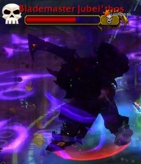 - Кроме того, время от времени Джубей’тос бросает в случайном направлении Клинок Скверны, который наносит сильный урон всем игрокам на своем пути и отбрасывает их назад.