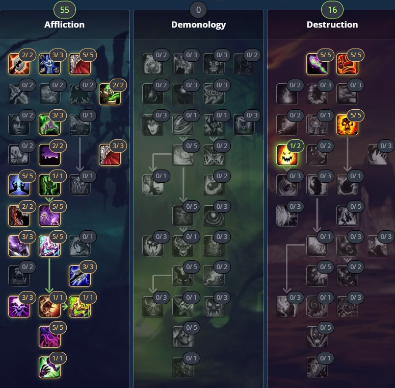 6. Таланты и PvE билды для Чернокнижника "Колдовство" в WoW WotLK