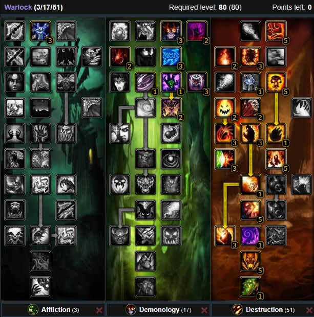 2. Выбор PvP-талантов для Чернокнижника "Разрушение" в WoW WotLK