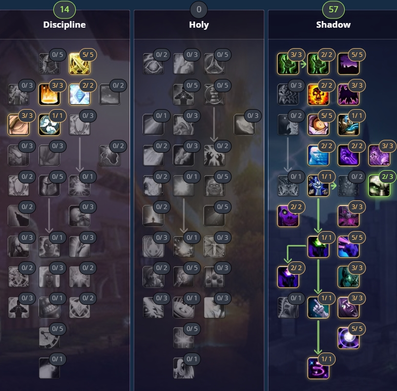 Стандартный билд для ШП Приста включает в себя специфичные таланты, которые нельзя менять. К счастью, эти таланты покрывают все нужды персонажа в рейдах и подземельях.