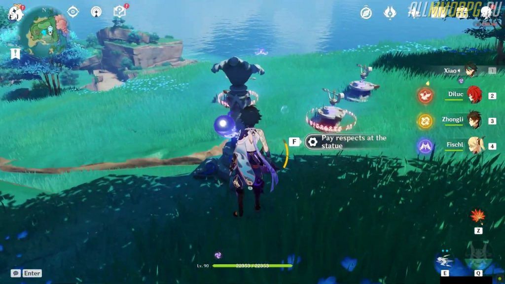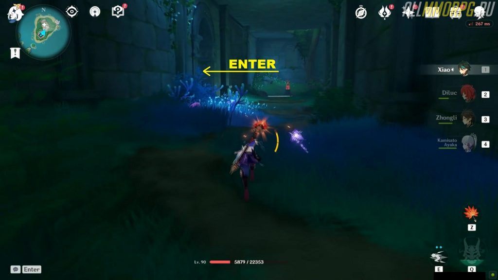 - Далее вам нужно добраться до пещеры, где находится Гидро Гипостазис, и набрать там воды. На нее указывает квестовый маркер, поэтому вы без труда разберетесь, куда нужно идти. Прибыв на место, осмотрите светящуюся область слева от босса, а потом отыщите такую же область у водопада;