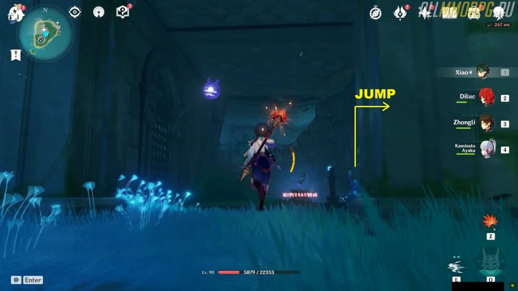 После сверните налево и заберитесь наверх. Наверху сбоку вы увидите фазовые врата и феечку возле них. Ворота использовать не нужно, просто подтолкните феечку.