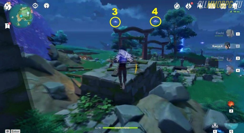 В святилище Моун нужно найти 4 электро-феечки. Сопроводите их к садам и получите в награду обычный сундук. Места, где находятся электро-феечки, указаны на скриншотах ниже.