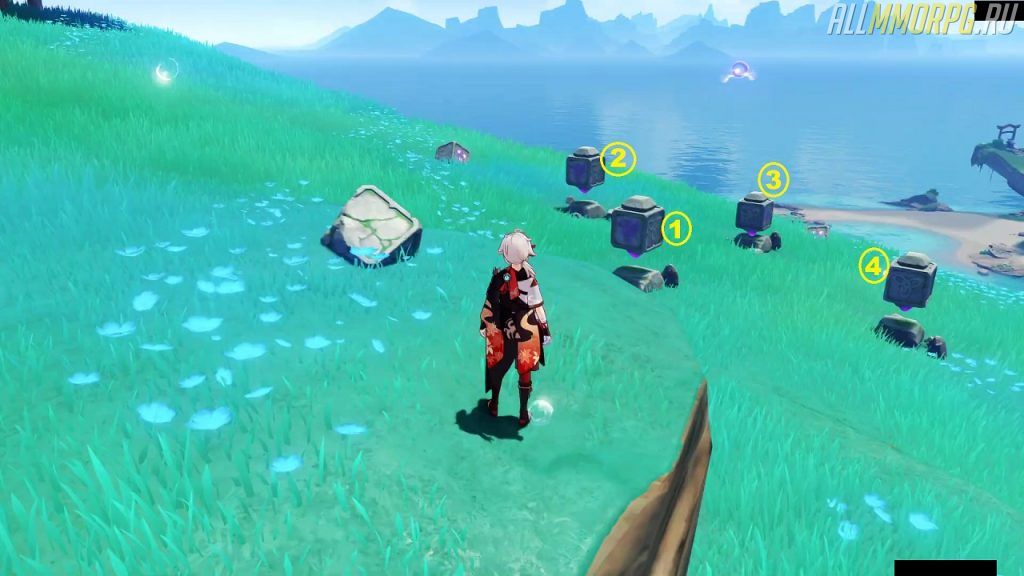 На севере святилища вы найдете 4 куба. Чтобы решить головоломку, бейте по ним в правильном порядке. Ваша цель – повернуть их все внутрь.