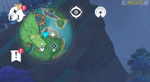 Как только вы окажетесь рядом с анемо- или геокулом, на мини-карте появится значок в виде четырехконечной звездочки. Он указывает на то, что поблизости находится окул. Чтобы подобрать его, вам нужно всего лишь прикоснуться к нему.