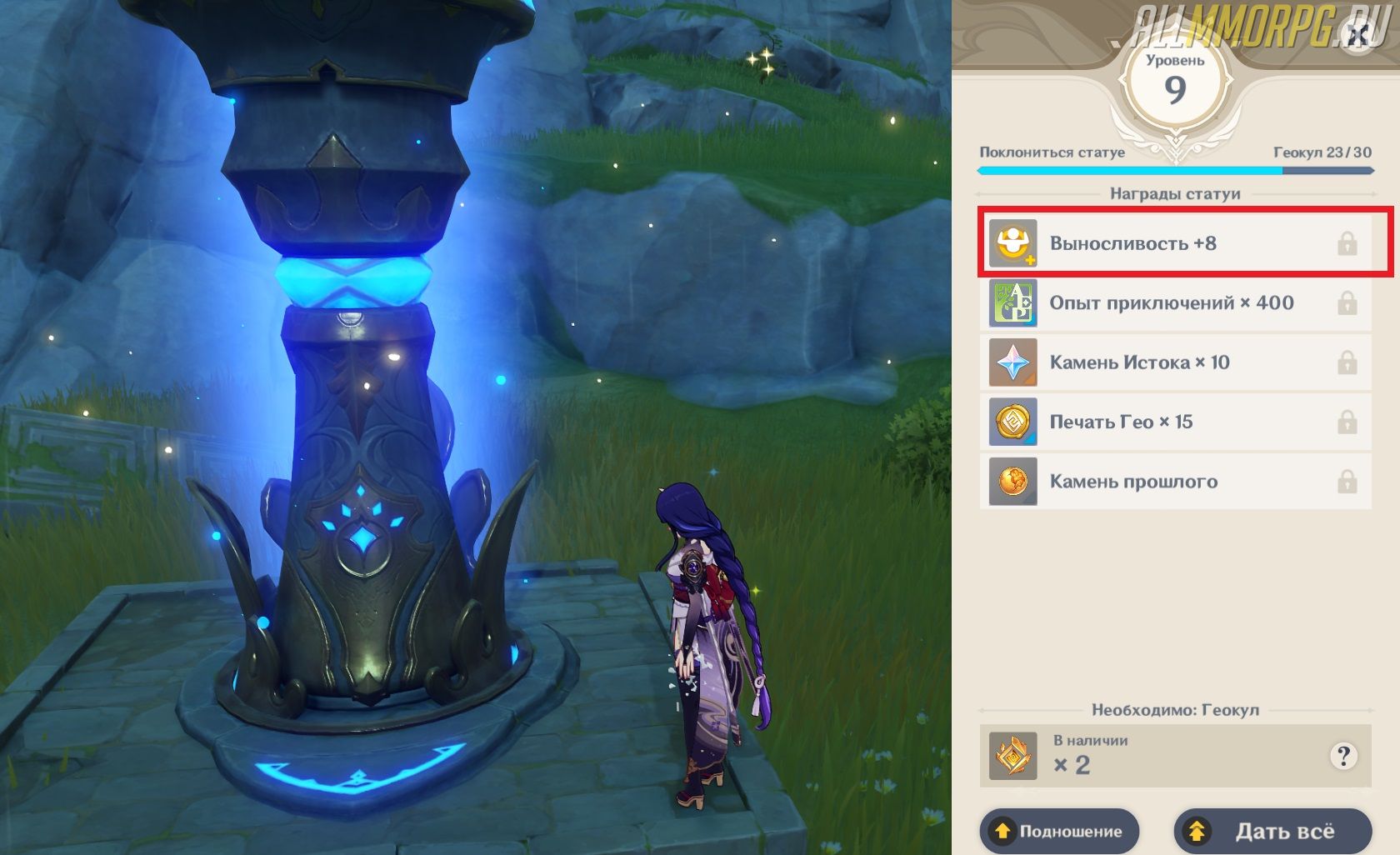 1. Увеличение запаса выносливости с помощью статуй Семи Архонтов