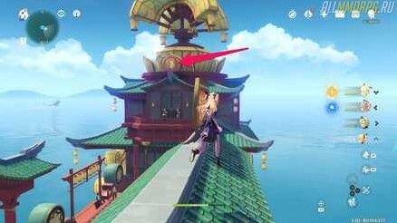 Над балконом, где находится Ло Ся, есть геокул. Забраться наверх можно с помощью способностей Гео-Путешественника, Сяо или Венти.