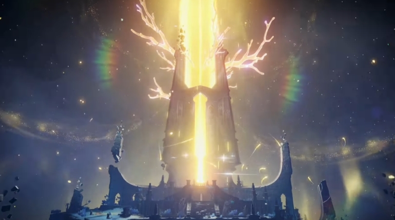 - Если вы сделали все правильно, то запустится короткая кат-сцена, показывающая процесс восстановления башни пустоты. Следующая цель – вскарабкаться наверх башни и активировать Резец Мира света с помощью Шкатулки Бокусо.
