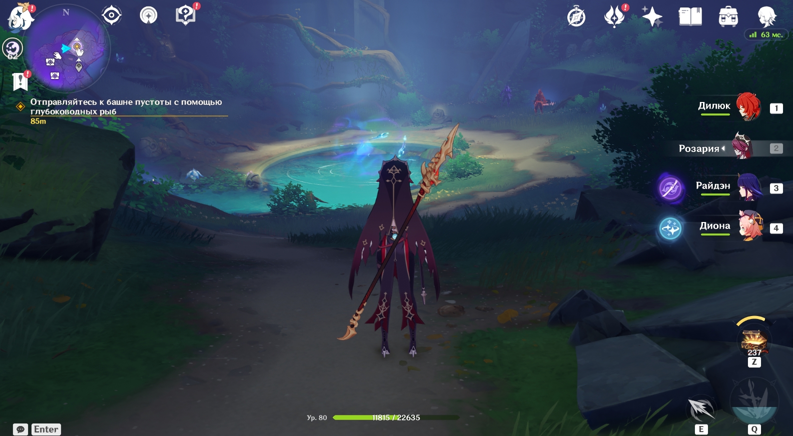 - Доберитесь до места, на которое указывает квестовый маркер. Там вы найдете озеро с телепортом над ним и несколько монстров Разрыва неподалеку. Убейте их, чтобы открыть сундук и получить немного Печатей Мира света. После идите к водоему и прыгайте в центр, чтобы перенестись в другую локацию.
