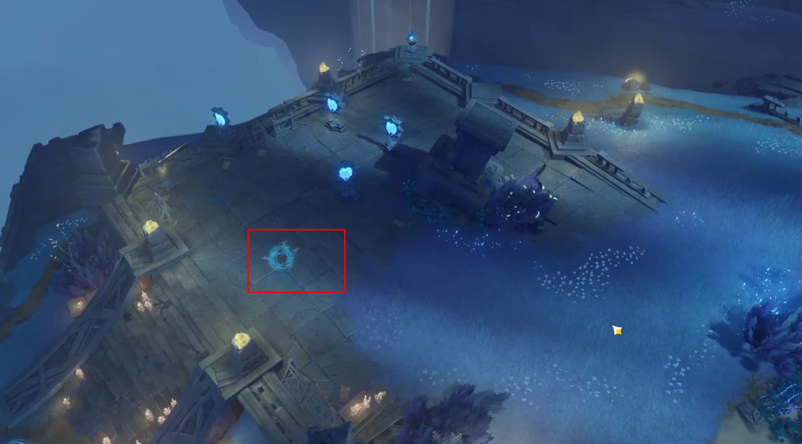 - Вас телепортирует на северо-запад Энканомии. На островке справа от вас будет запечатанный телепорт. Используйте 2 Глубинной костной руды и 2 Боба Токое для его разблокировки.