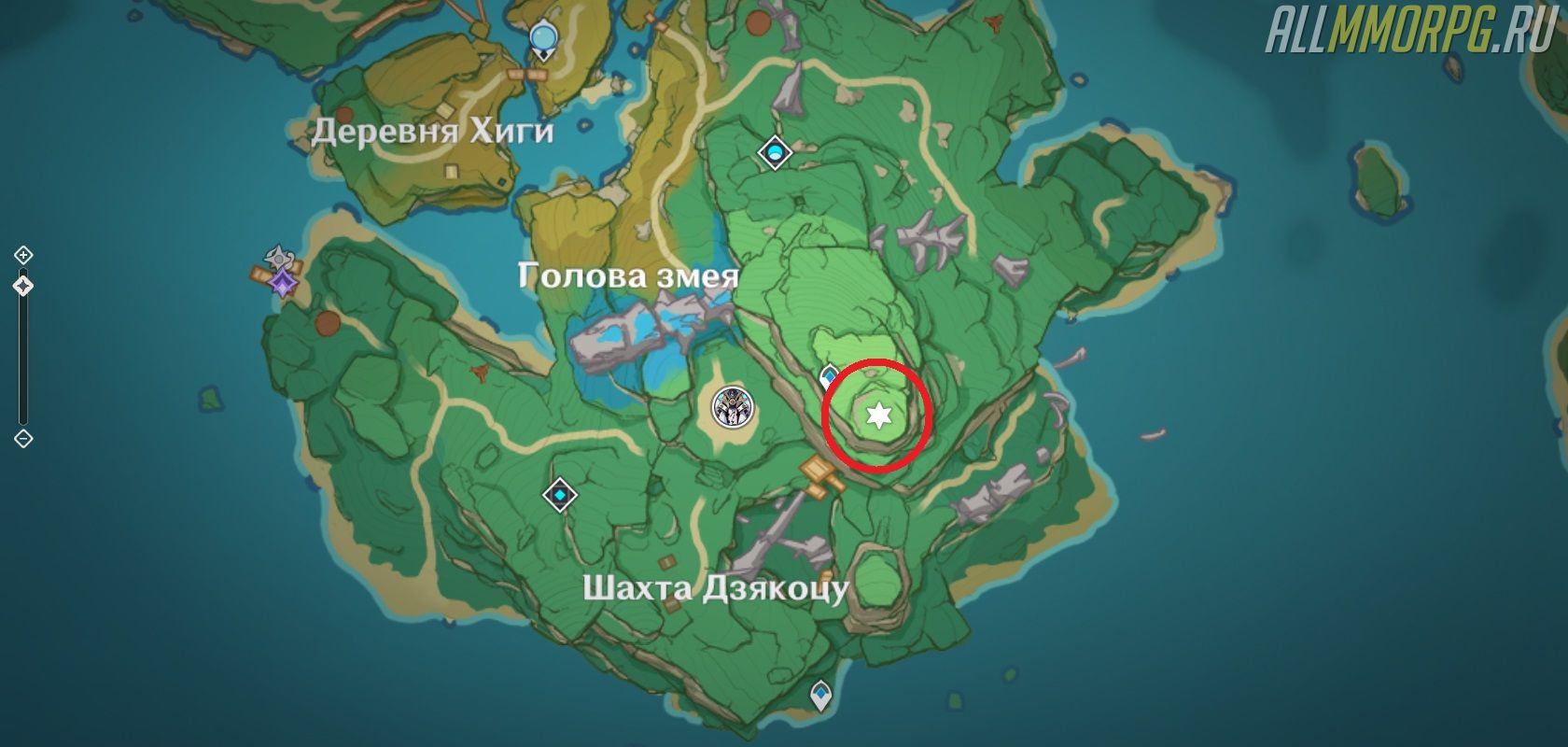 Третий самурай обитает в пещере на западе от подземелья Павильон «Сяккэи». Телепортируйтесь к ближайшей точке быстрого перемещения и спланируйте с возвышенности на запад. После найдите дыру в земле и спрыгните вниз.
