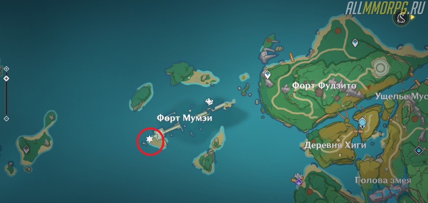 Первого самурая вы найдете на острове Ясиори на востоке от босса Магу Кэнки. Телепортируйтесь к ближайшей точке быстрого перемещения и заберитесь на самую высокую гору острова.