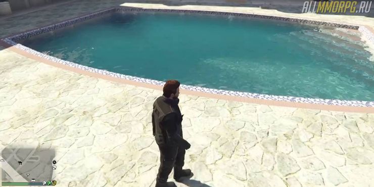 После вы выйдите на большую площадку, где есть самый большой бассейн в Grand Theft Auto V. Так как он находится во дворе, окруженном забором, с улицы его не видно. К сожалению, ничего полезного в этом месте нет, зато вы сможете сделать кучу красивых скриншотов.
