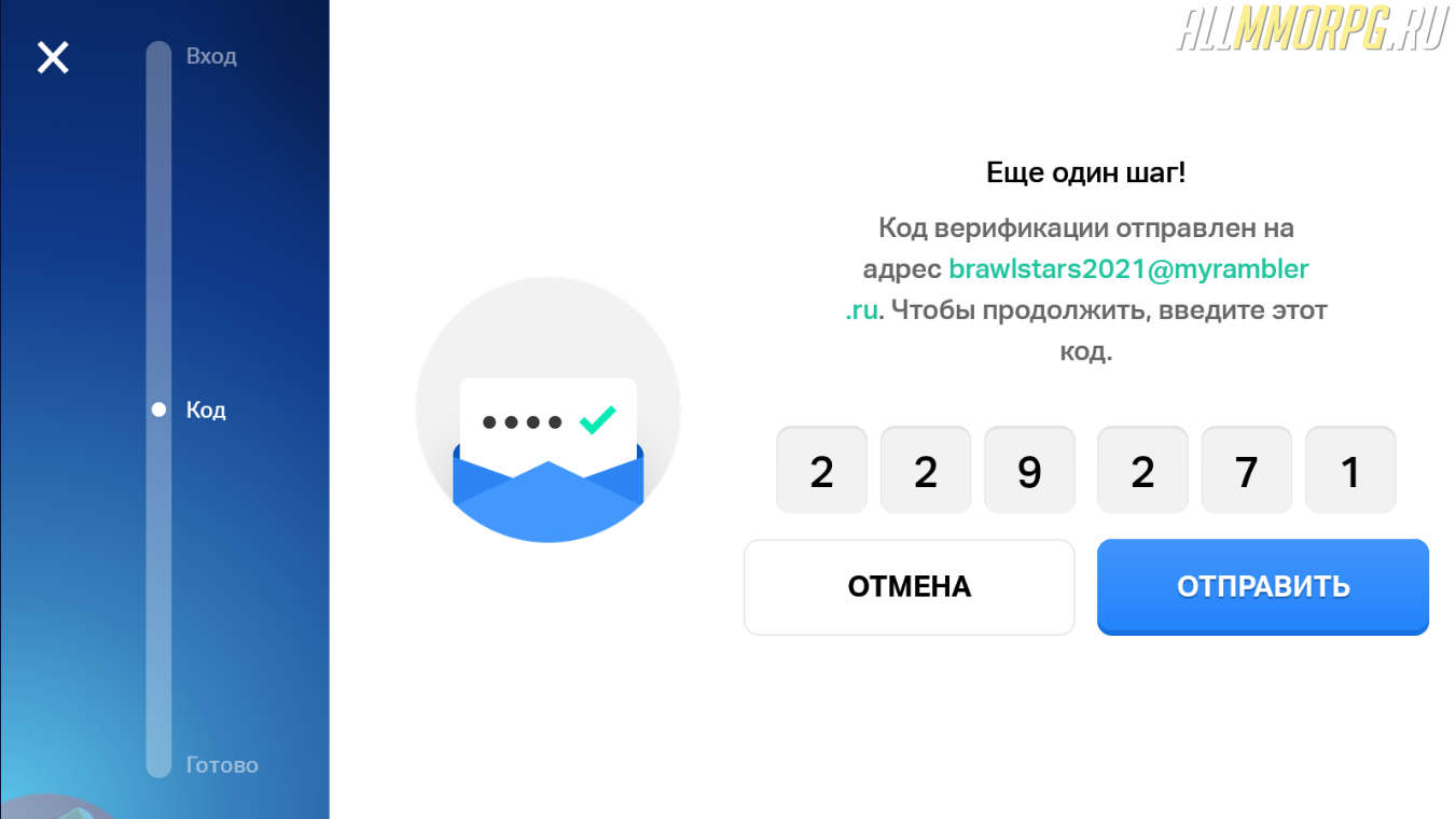 - Подтвердите, что это ваш почтовый ящик, введя код из письма, которое придет на указанную почту.