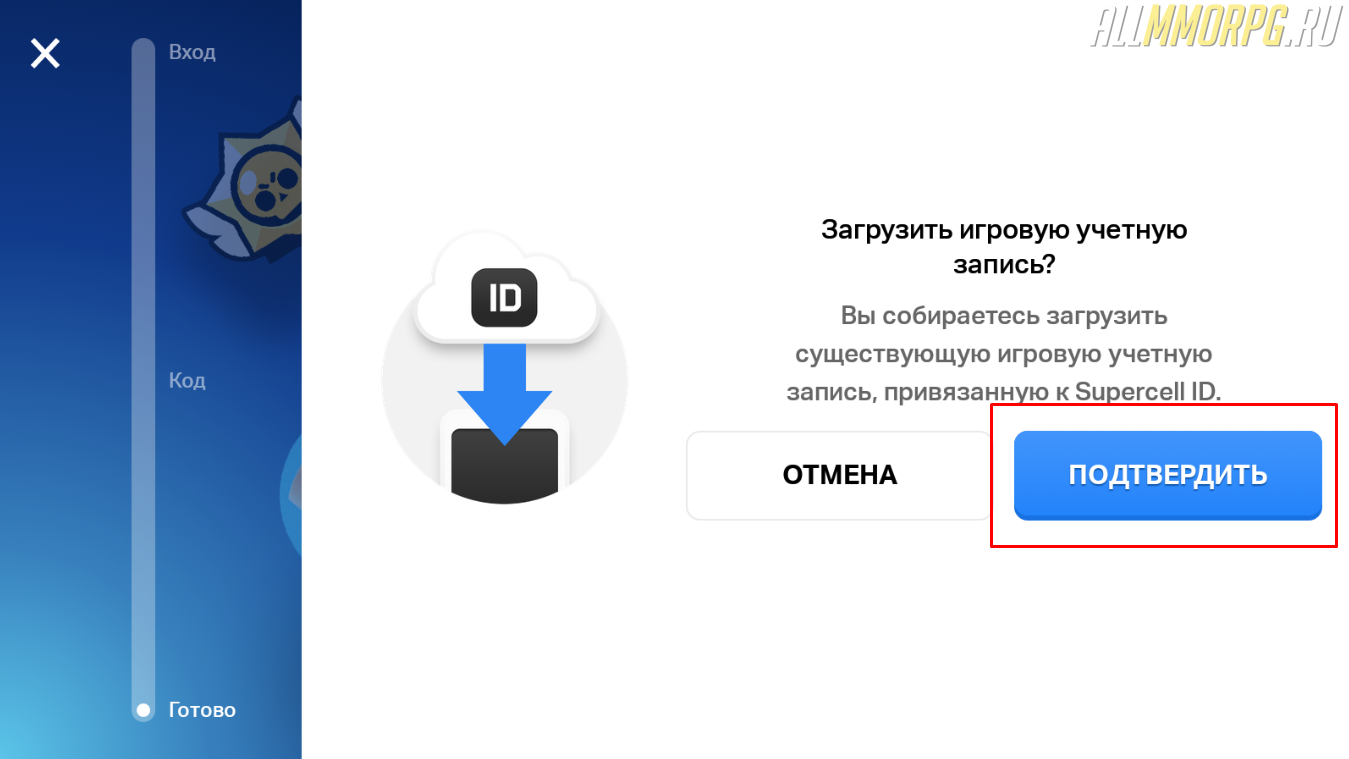 - Далее нажмите «Подтвердить» загрузку существующей учетной записи Brawl Stars.