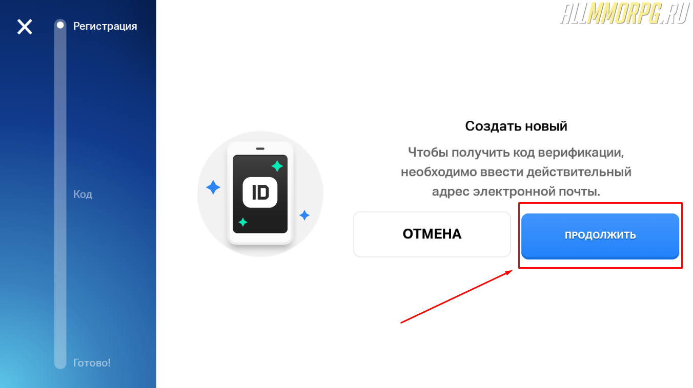 - При наличии электронной почты вводим адрес своего почтового ящика и жмем «Продолжить».