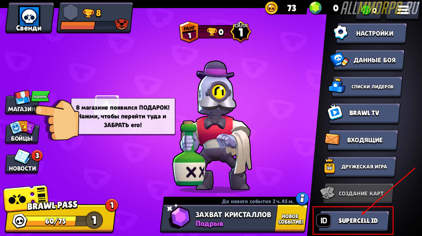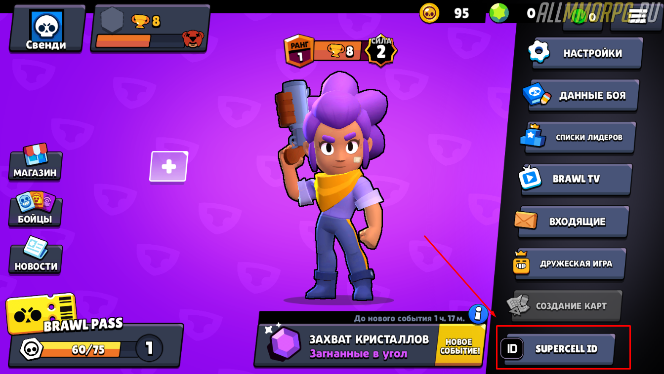 Проще говоря, Supercell ID является вашим аккаунтом в Brawl Stars, создать который можно прямо в игре. Однако для этого нужно иметь любую активную эл. почту. Если у вас есть зарегистрированный почтовый ящик, создайте учетную запись в Brawl Stars, выполнив следующие действия: