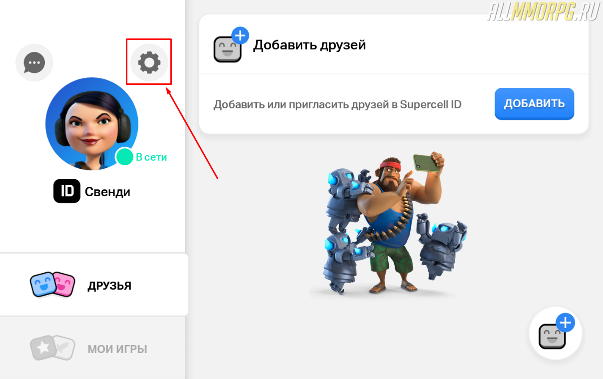 - Открыть меню игры (см. скриншот ниже) и нажать «Supercell ID».