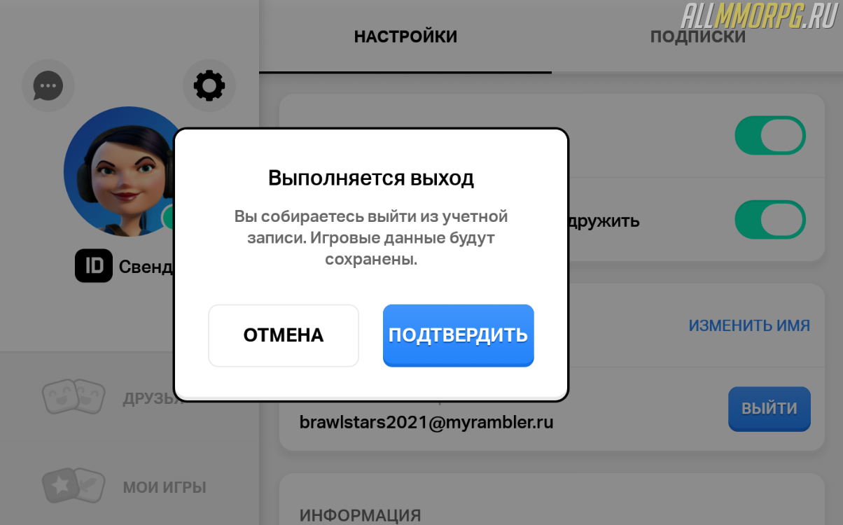 После этого игра перезагрузится, и ваш аккаунт будет отключен с сохранением прогресса. Продолжить играть с того самого места, на котором вы остановились, можно после повторного входа в аккаунт Brawl Stars через Supercell ID.