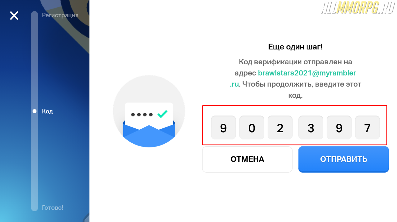 - После этого на вашу почту придет письмо, в котором указан код подтверждения. Введите его в соответствующее поле в игре и нажмите «Отправить».
