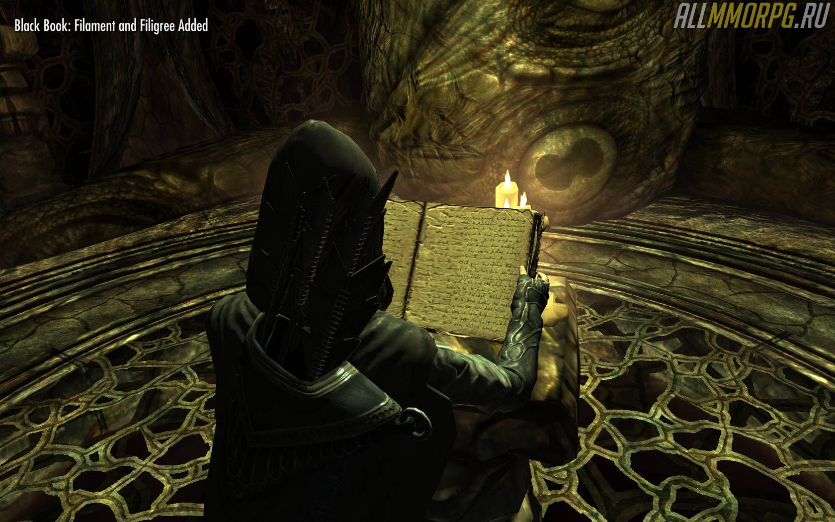 Найти «Черную книгу: Филамент и филигрань» можно на острове Солстхейм в кургане Колбьорн, который находится на юго-востоке от Вороньей Скалы. Чтобы разблокировать доступ к книге, обратитесь к Ралису Седарису неподалеку от кургана и дайте ему 1 тысячу септимов – пожертвование на проведение раскопок в этом месте. В последствие вам придется отдать ему в общей сумме 11 тысяч септимов, что может быть накладно, если вы только начали играть и особо не разжились деньгами.